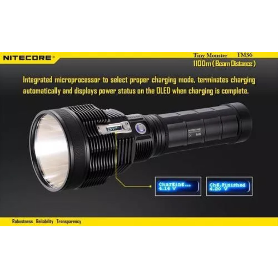 The latest innovation from Nitecore, TM36 is a highly focused compact rechargeable searchlight reaching 1200 yards. It also comes with built-in charger, high capacity battery pack and advanced digital display for output lumens, beam distance, battery status and remaining runtime, which makes it not only powerful but also enjoyable at low total cost of ownership. It is perfect for search and rescue, caving, exploration, inspection etc.