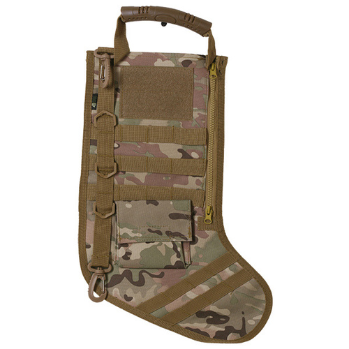 Ruck Up Stockings are the great gift for holidays. Contains MOLLE Straps for gifting accessories and extremely lightweight with strong hanging handle. Front side includes a zippered opening, pouch and Velcro attachment. Celebrate the holidays tactically with these amazing stockings from Ruck Up!